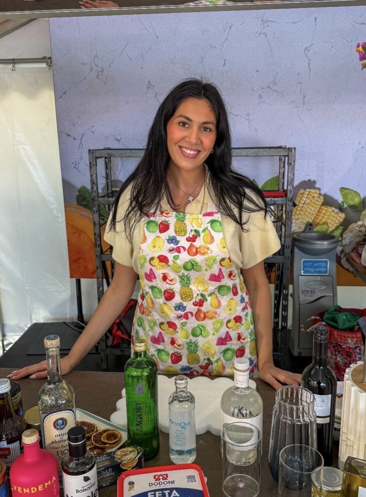 Nicolette will cook Ikarian Soufiko Pasta and prepare a Greek Delight Spritz.